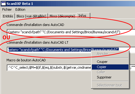 - copier la commande d'installation pour AutoCAD ou celle pour LT, suivant la version utilisée